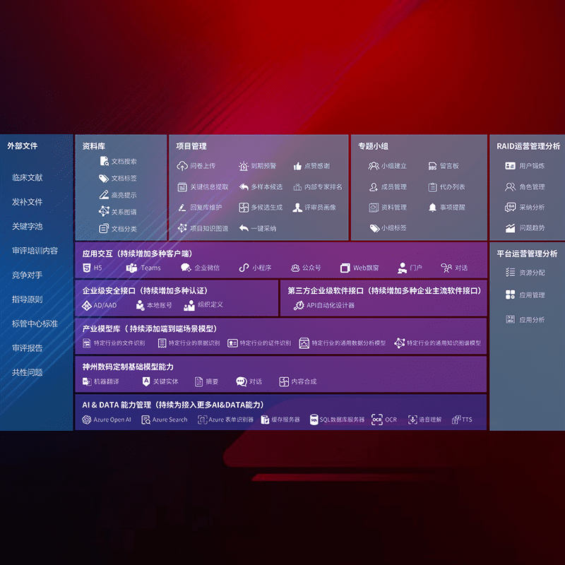 医疗器械产品上市前,,,,要熟悉严格与繁复评审标准,,,,整理分析监管机构指导文件中的海量信息。。。企业急需一个智能化解决方案,,,,提升知识管理效率,,,提高评审通过率,,,以提升其市场竞争力。。。